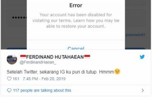 “Setelah twitter, sekarang IGU ku pun ditutup,” cuit Ferdinand.
