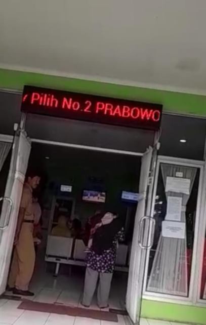 Fasilitas LED running text di Puskesmas Srondol, Kota Semarang, diduga diretas pada Senin (4/3) pagi. LED yang seharusnya menampilkan tulisan berjalan mengenai pesan-pesan kesehatan serta program puskesmas, berganti menjadi pesan kampanye.