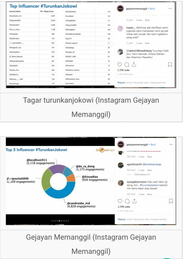 Dalam akun tersebut pula dijelaskan mengenai lima besar inflencer yang mengusung tagar turunkanjokowi.