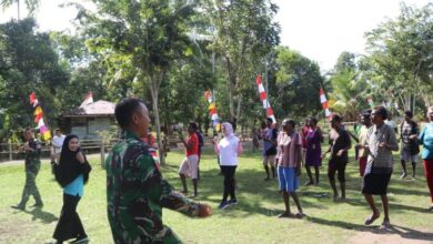 Prajurit TNI Gelar Senam Kebugaran Untuk Ibu-Ibu di Perbatasan Indonesia Papua Nugini