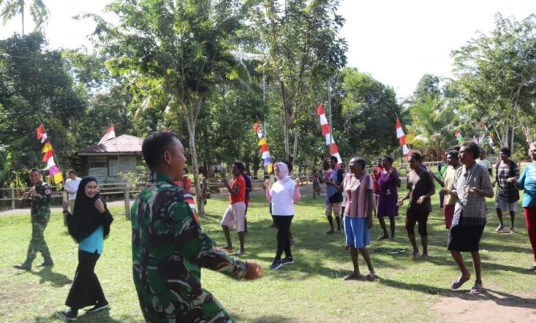 Prajurit TNI Gelar Senam Kebugaran Untuk Ibu-Ibu di Perbatasan Indonesia Papua Nugini