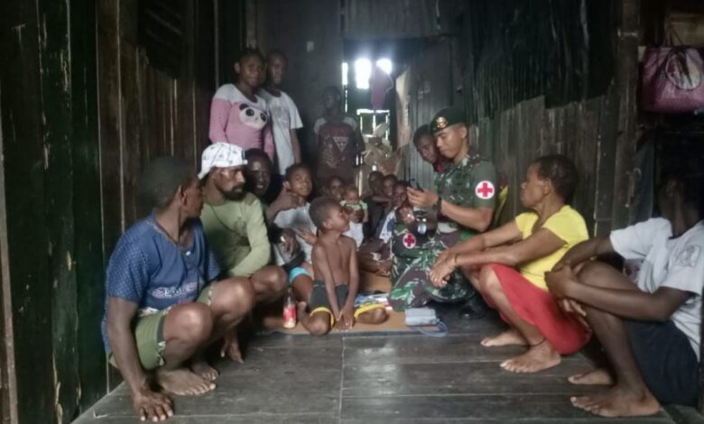 Prajurit TNI Laksanakan Pelayanan Kesehatan di Pemukiman Suku Sem Sagar Asmat