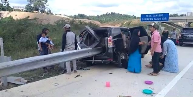 Tak Ada Korban Jiwa, Avanza 8 Penumpang Hantam Pembatas Tol Balikpapan hingga Tembus