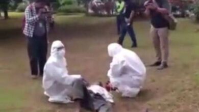 Pria Ini Dievakuasi Petugas dengan APD Usai Tumbang di Taman Depan Wali Kota Jaktim dengan Suhu Badan Tinggi