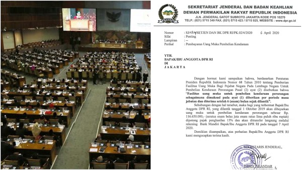 Pasalnya, surat itu berisikan aturan pembayaran uang muka pembelian kendaraan bagi anggota DPR RI sebesar Rp 116.650.000.