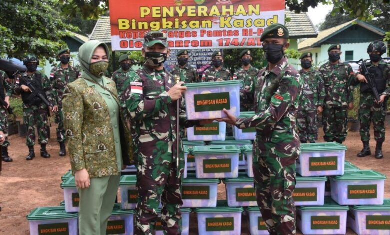 Danrem 174 Merauke Kolonel Inf Bangun Nawoko (Alumni Akmil 1992) juga menyerahkan secara simbolis bingkisan lebaran dari Kasad kepada segenap Prajurit Satgas Pamtas dan Komando Kewilayahan yang berada di jajaran Korem 174/ATW.