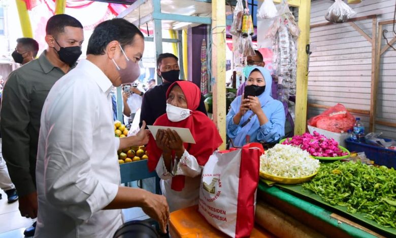Jokowi Bagikan Bansos di Pasar Pucang Anom