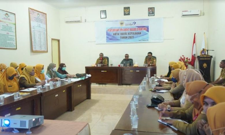 Abadikini.com, TIDORE – Setelah dibentuk Tim Percepatan Penanganan Penurunan Stunting di Kota Tidore Kepulauan, Tim tersebut telah melakukan ection dalam penanganan Stunting di Kota Tidore, sehingga dalam aksi tersebut dilakukan pertemuan terkait dengan penyampaian hasil pengkajian audit kasus stunting yang dipimpin langsung oleh Wakil Walikota Tidore Kepulauan Muhammad Sinen yang juga selaku ketua TPPS Kota Tidore Kepulauan di Aula Dinas Kesehatan Kota Tidore, Senin (22/8/2022).