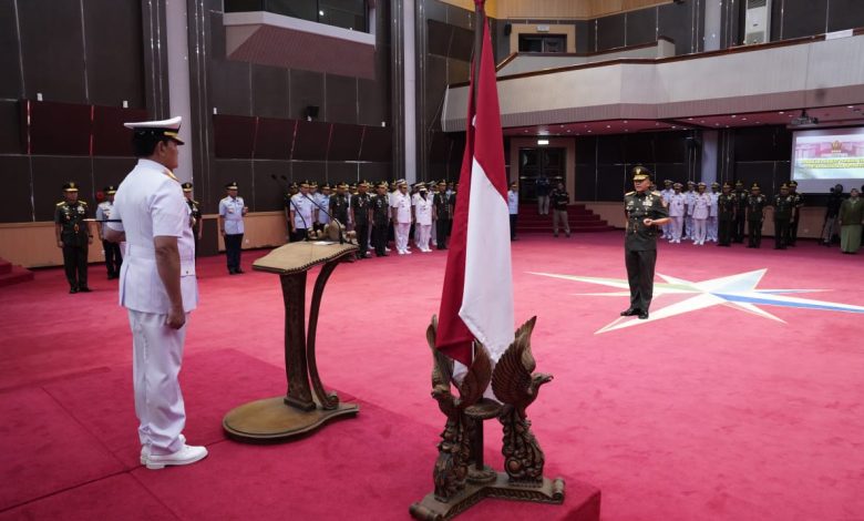 Abadikini.com, JAKARTA – Panglima TNI Laksamana TNI Yudo Margono menjadi Irup pada upacara Serah Terima Jabatan (Sertijab) tujuh jabatan utama Mabes TNI bertempat di Aula Gatot Subroto Mabes TNI Cilangkap Jakarta Timur, Kamis (6/4/2023).