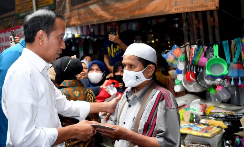 Momen Presiden Jokowi Bagikan “THR” ke Pedagang Pasar di Depok