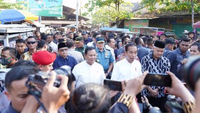 Menhan Prabowo Dampingi Jokowi Blusukan di Pasar Grogolan, Pekalongan