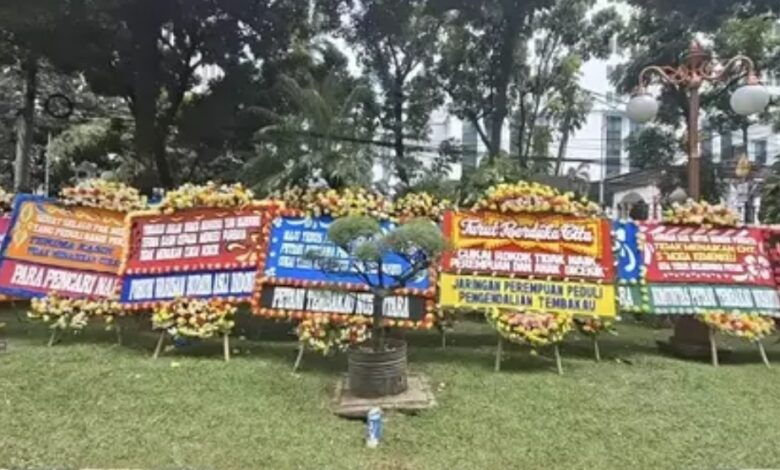 Namun, dukungan itu tidak datang tunggal. Beberapa karangan bunga lain justru menohok sang menteri. Indonesian Youth Council for Tactical Changes (IYCTC) menulis sindiran: “Pak Purbaya, boleh jadi menteri koboi, asal jangan koboi-koboian sama industri rokok.”