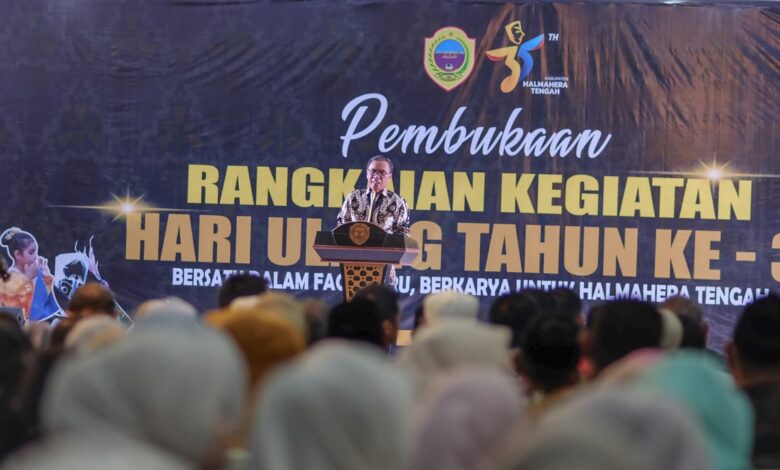 Bupati juga mengapresiasi peran organisasi wanita seperti PKK, DWP, dan Persatuan Istri-Istri DPRD sebagai “tiga srikandi” yang vital dalam mendukung pemerintahan daerah. Pembukaan rangkaian HUT ke-35 ini diharapkan menjadi awal semangat baru bagi seluruh masyarakat Halmahera Tengah untuk bersatu dan berinovasi.