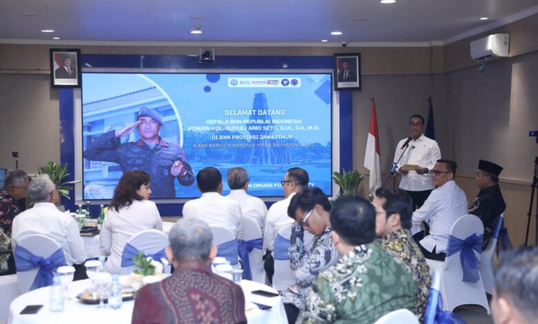 Abadikini.com, SURABAYA – Kepala Badan Narkotika Nasional (BNN) RI, Suyudi Ario Seto, melakukan kunjungan kerja di Surabaya pada Kamis (16/10). Dalam pertemuan dengan jajaran BNN Jawa Timur dan mitra pentahelix (pemerintah, akademisi, bisnis, komunitas, dan media), Kepala BNN RI menyampaikan apresiasi atas kolaborasi yang terjalin dalam semangat War on Drugs for Humanity.