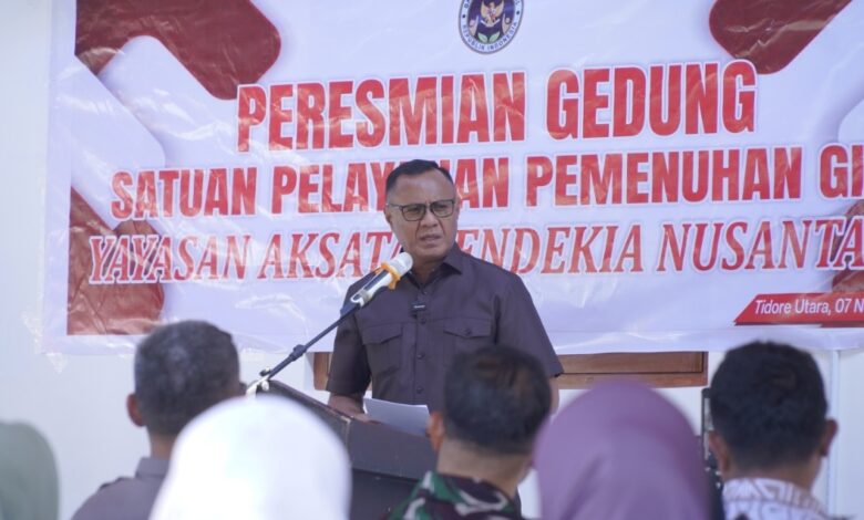 Abadikini.com, TIKEP — Program Makan Bergizi Gratis (MBG) kini semakin nyata di Kota Tidore Kepulauan. Wali Kota Muhammad Sinen meresmikan Gedung Satuan Pelayanan Pemenuhan Gizi (SPPG) Yayasan Aksata Cendekia Nusantara di Kelurahan Ome, Kecamatan Tidore Utara, Jumat (7/11/2025). Program ini menjadi bagian dari strategi nasional untuk memperkuat ketahanan gizi sejak usia dini.